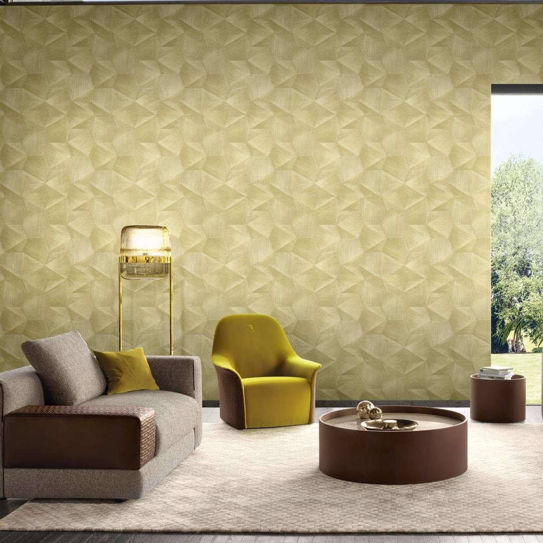 Обои из коллекции Trussardi 5 отличаются стильным геометрическим рисунком в салатовом цвете. Благодаря флизелиновой основе обои легко клеятся и не деформируются после высыхания. Виниловое покрытие обеспечивает долговечность и устойчивость к влажному уходу.
