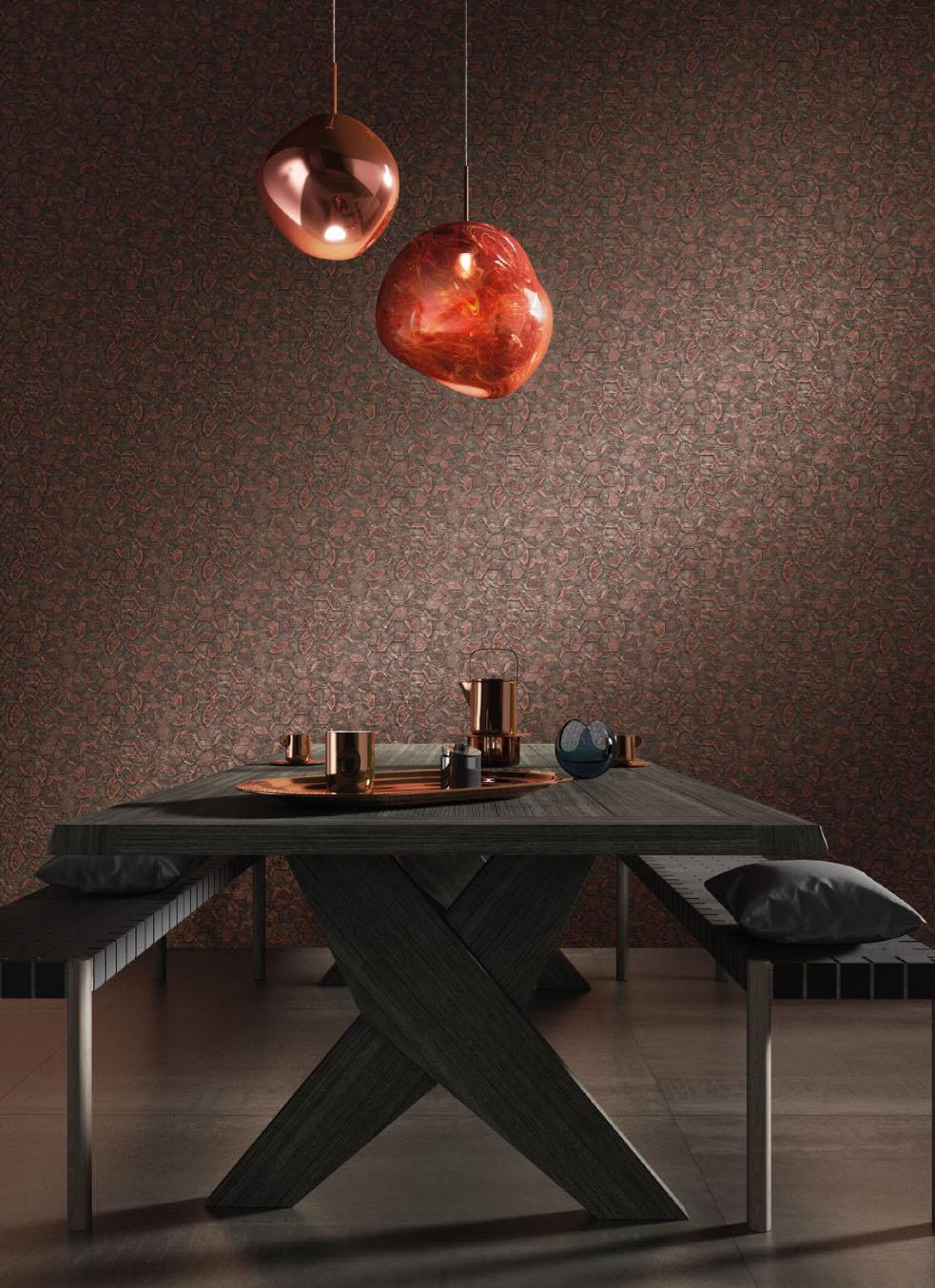Обои коллекции Fuksas имеют терракотовый оттенок, который гармонично впишется в любой стиль интерьера. Они станут стильным дополнением к вашему дому или офису.