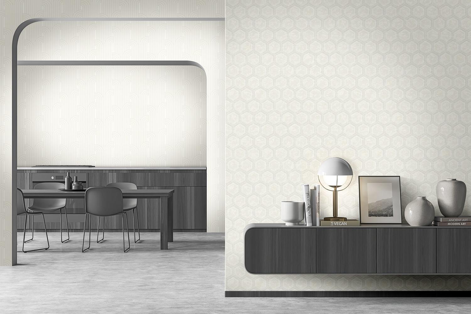 Геометрический рисунок придаёт обоям современный вид, а белый цвет гармонично впишется в любой интерьер. Страна производства — Италия, что гарантирует высокое качество и безупречный дизайн.