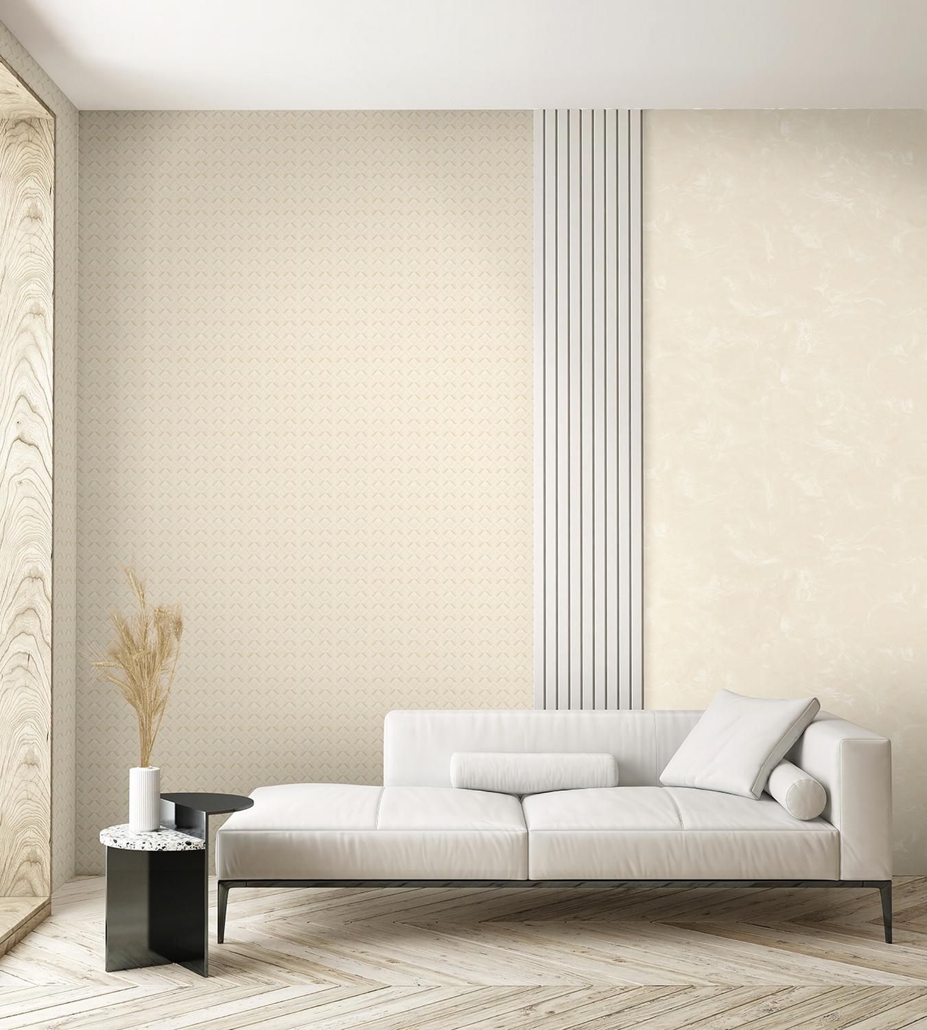 Обои из коллекции Vision отличаются стильным геометрическим рисунком и бежевым цветом, который гармонично впишется в любой интерьер. Флизелиновая основа делает процесс поклейки быстрым и удобным, скрывая мелкие неровности стен.