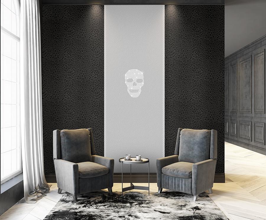 Дизайн обоев в чёрном цвете с другим принтом из коллекции Philipp Plein добавит изысканности и элегантности в ваш интерьер. Они станут отличным выбором для спальни, гостиной или кабинета.