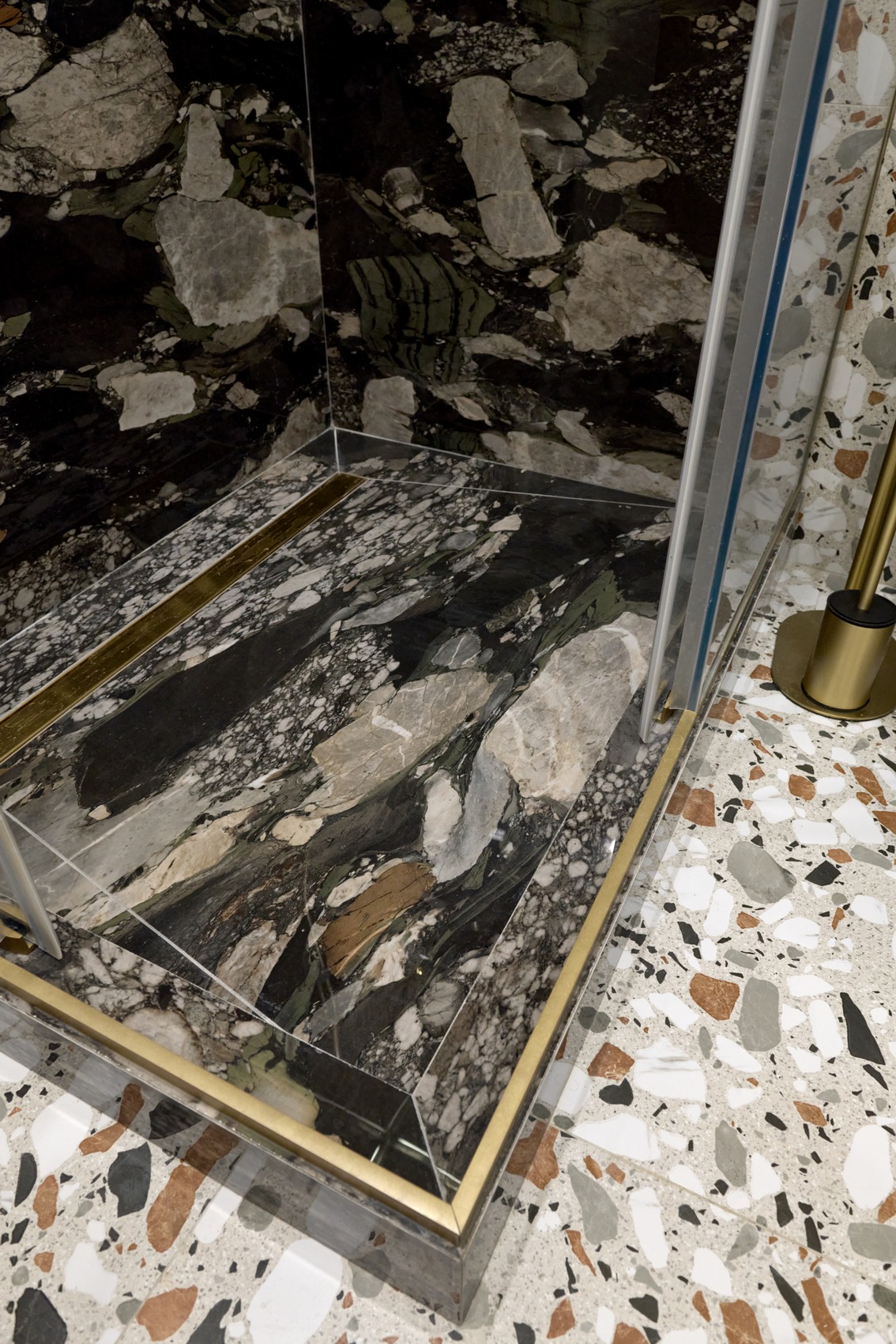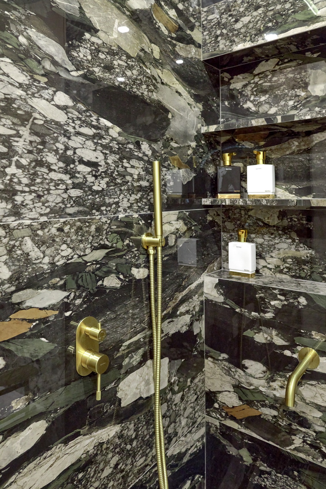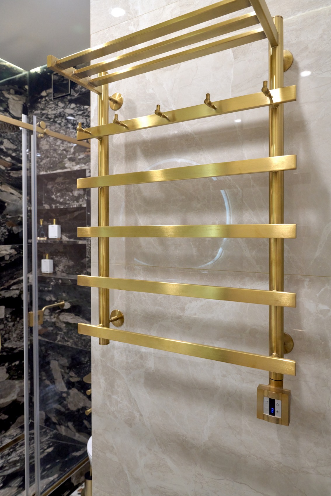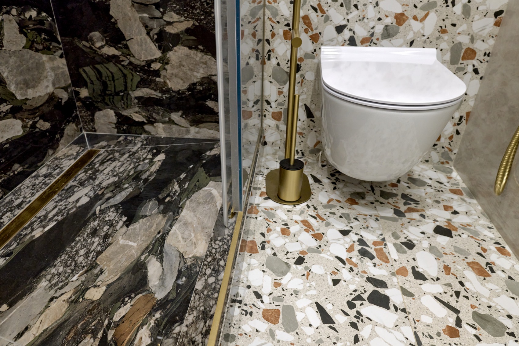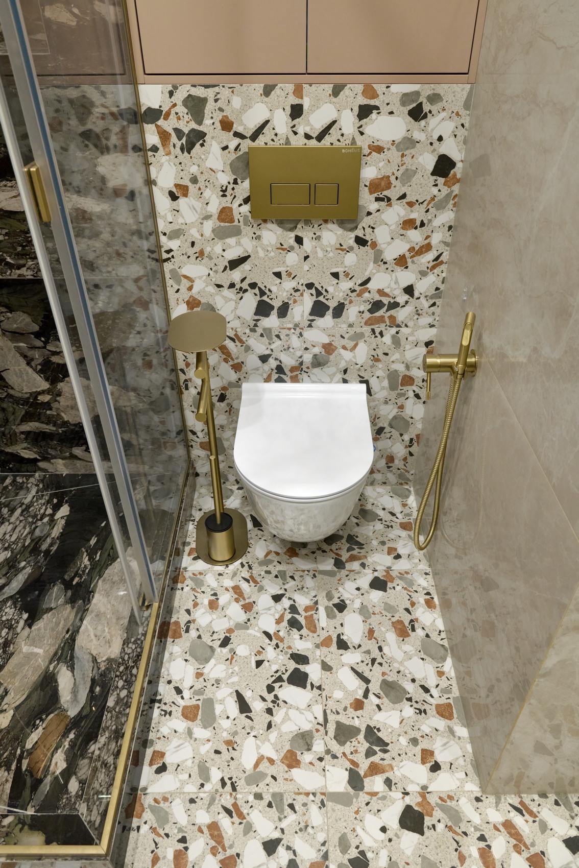 В качестве напольного покрытия уложен керамогранит Italon Wonderful Life Almond формат 600х600 под натуральный камень, создающий стильный и дорогой интерьер.