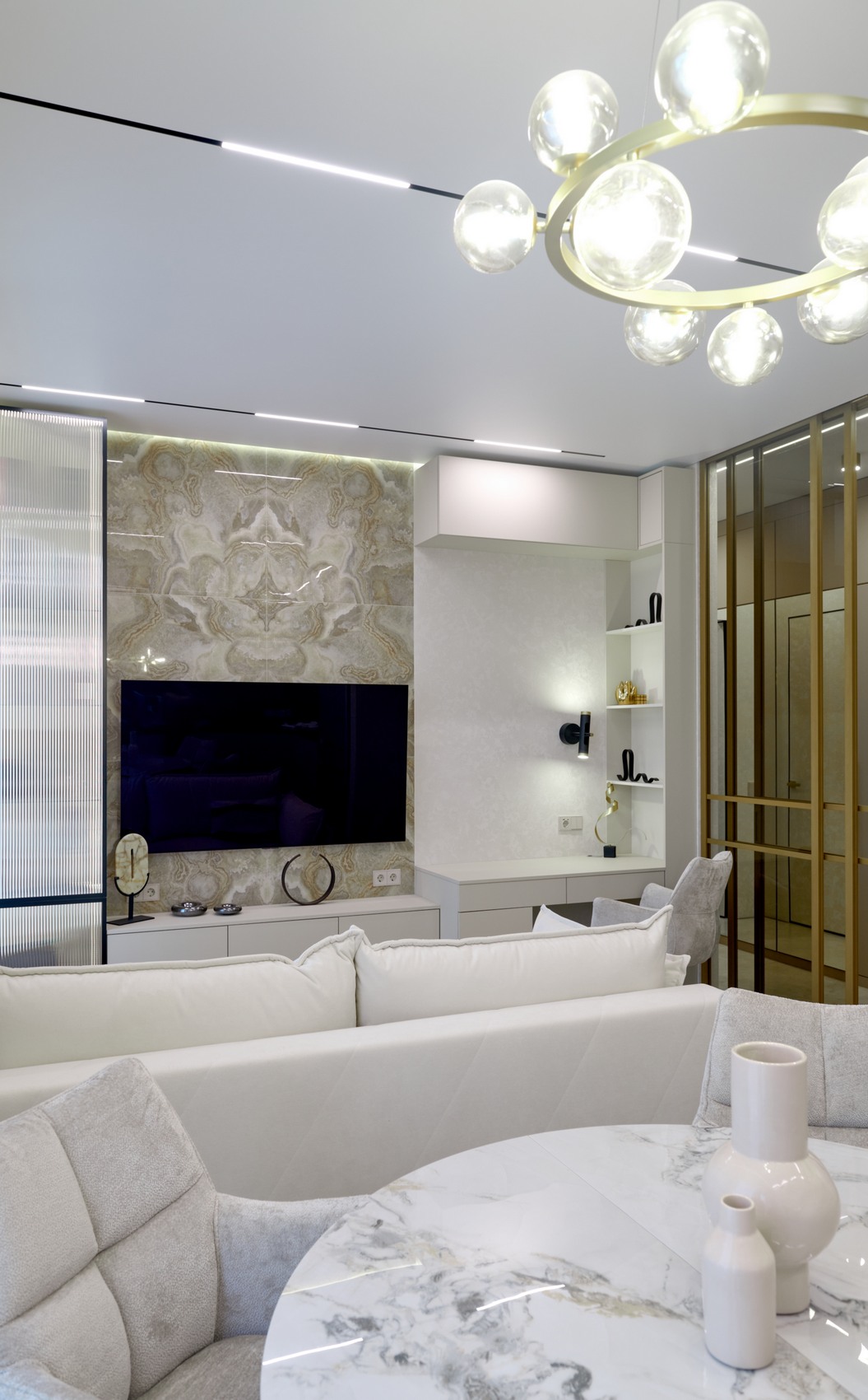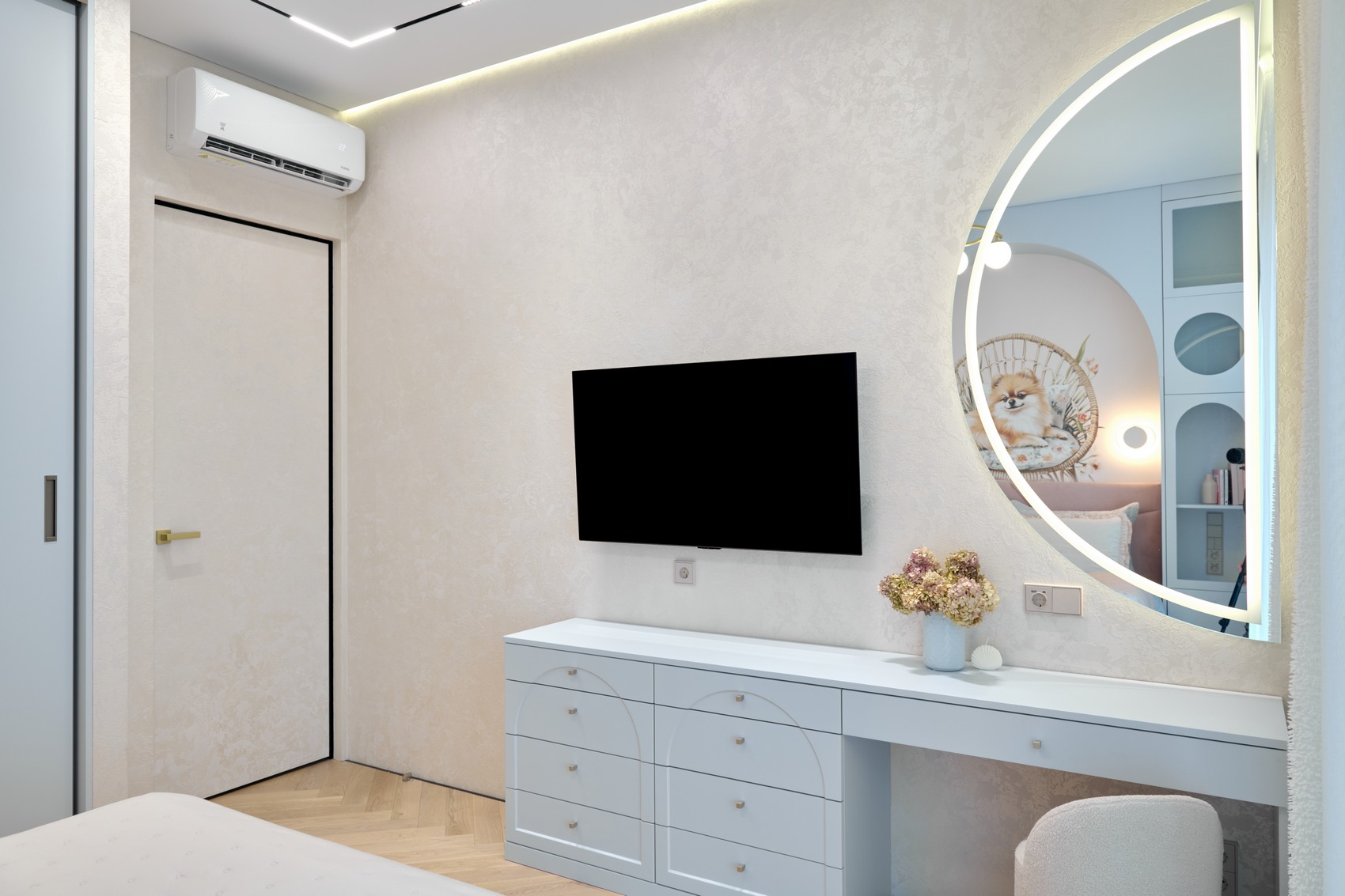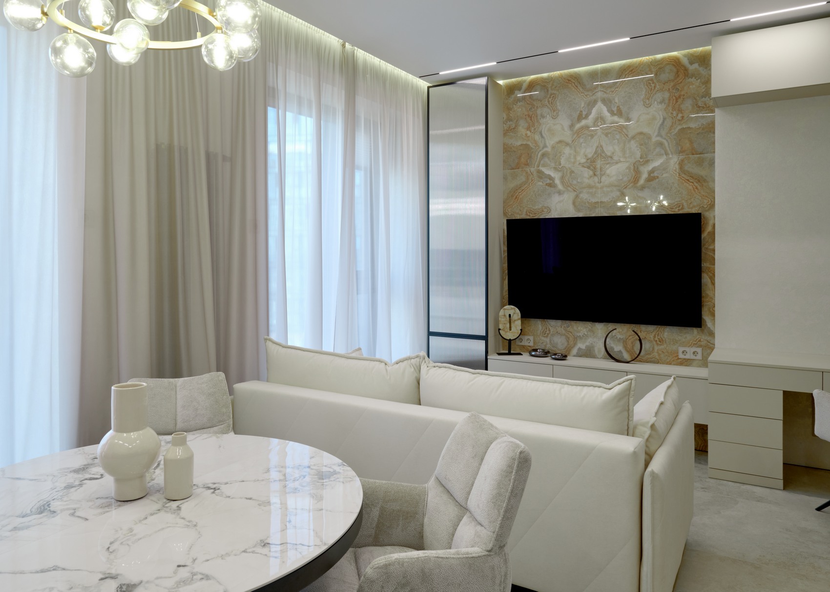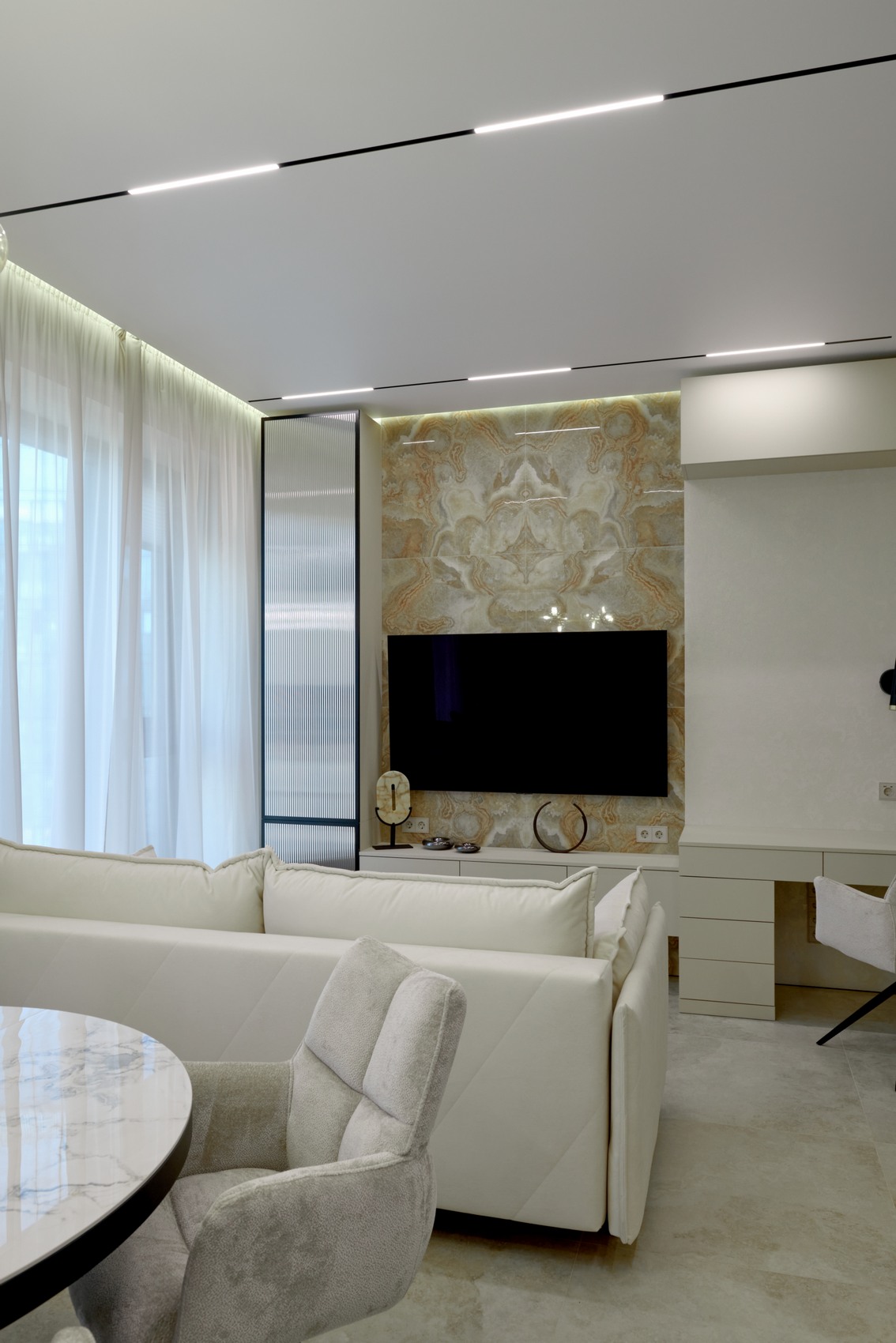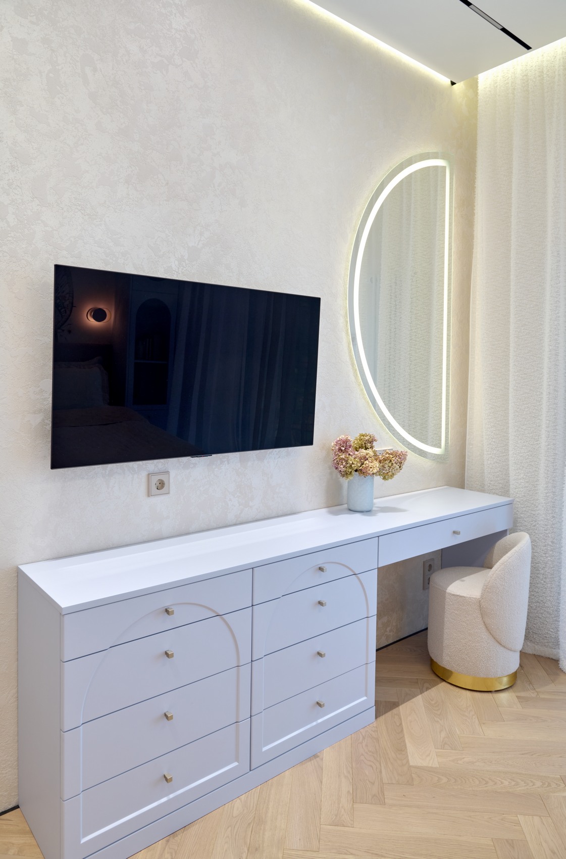 Общий стиль — это сочетание чистых линий, мягких светлых тонов и выразительных текстур, что придает интерьеру изысканность и чувство умиротворения!