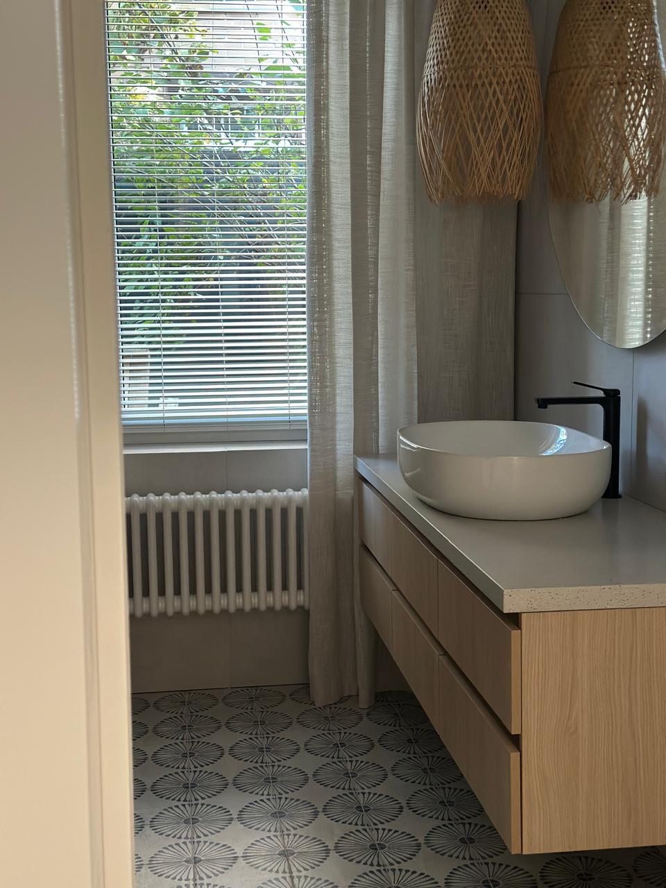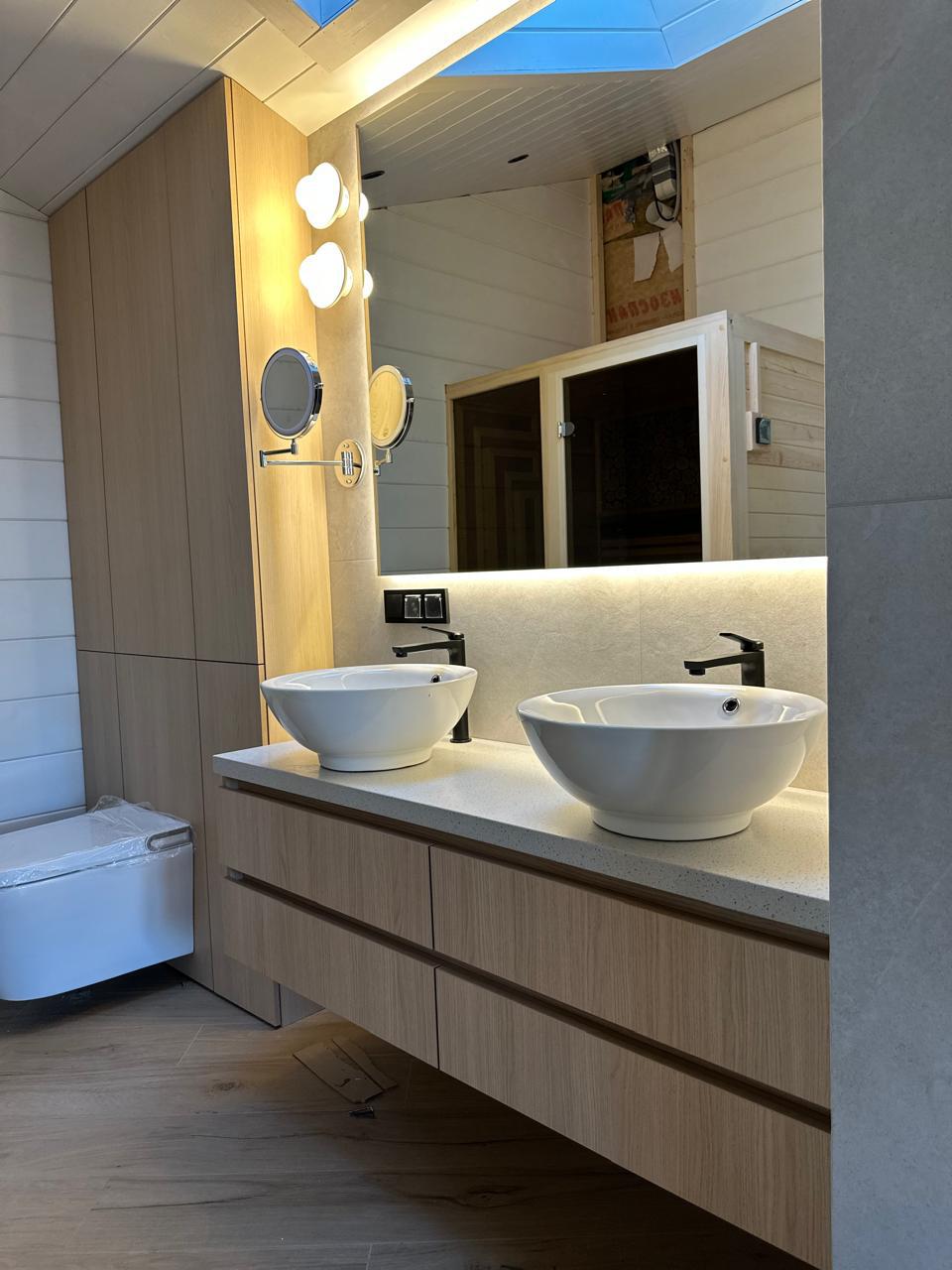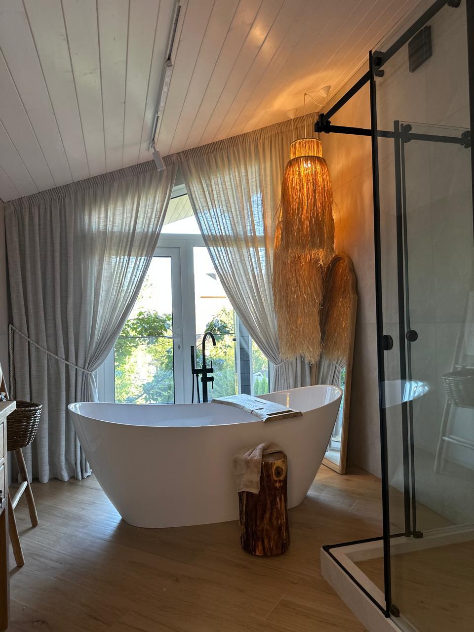 Интерьер с использованием тёплых оттенков и декоративных элементов, которые создают уютную и расслабляющую атмосферу.