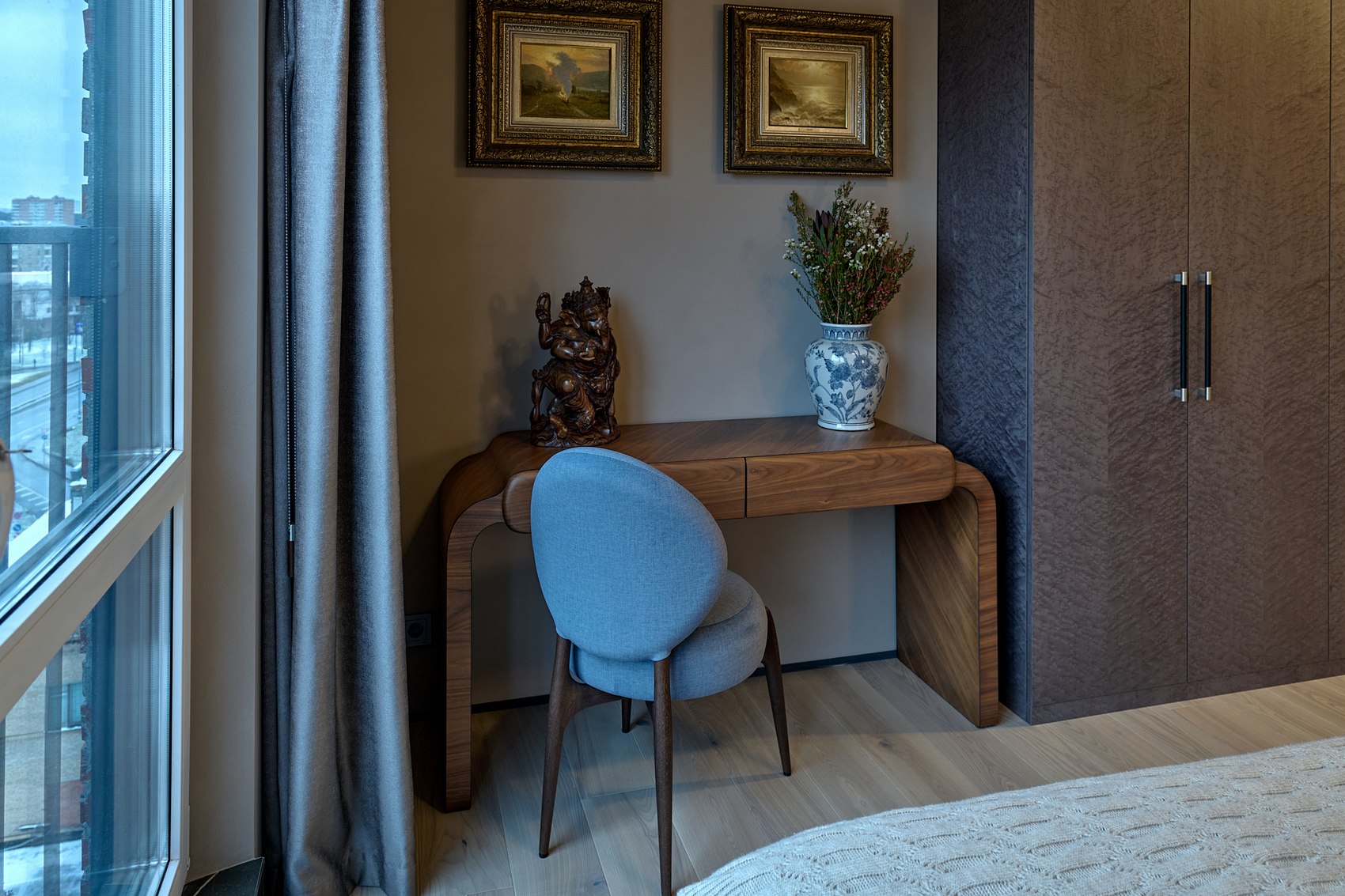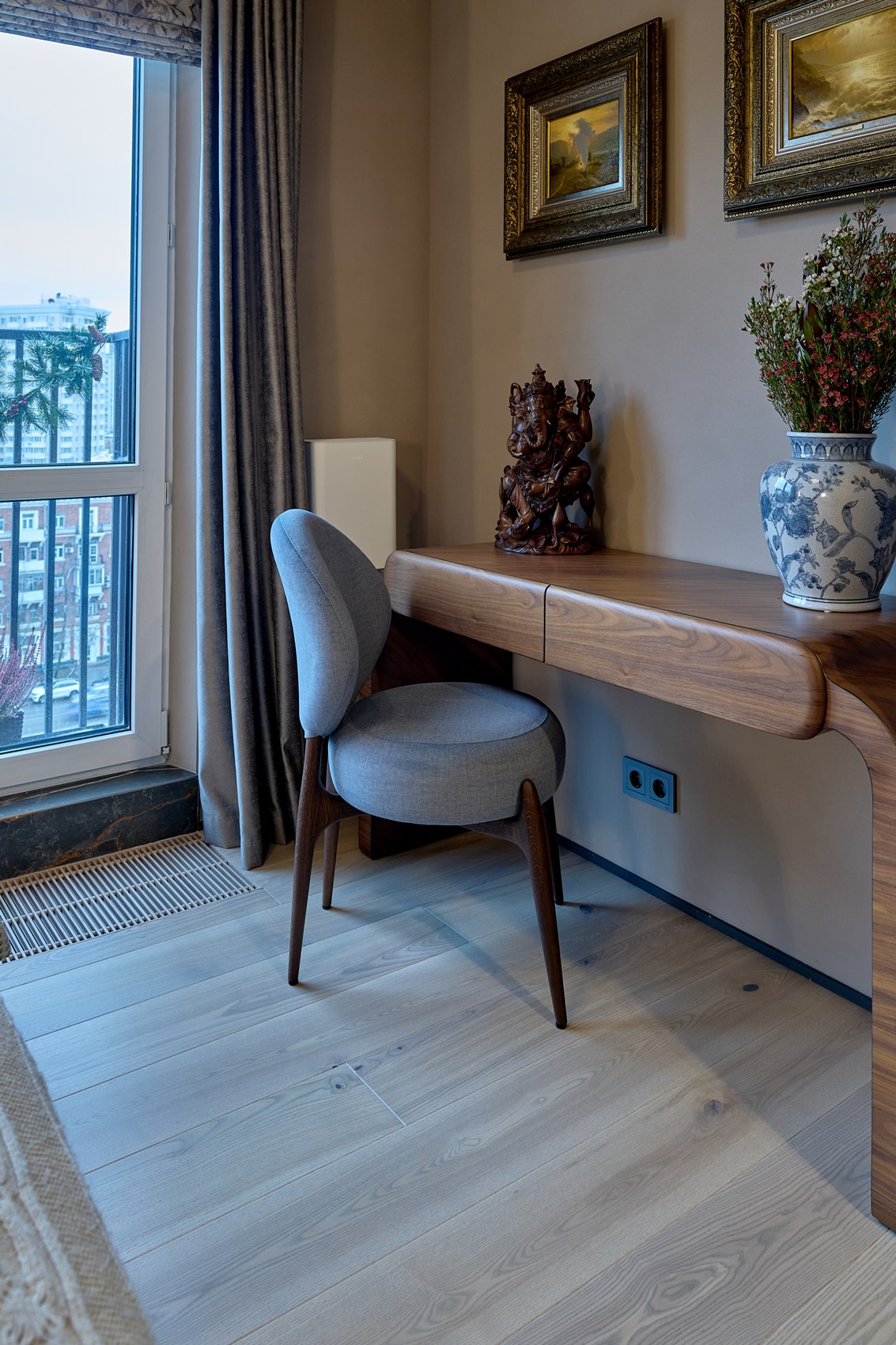 У заказчиков есть своя коллекция искусства и предметов декоративного искусства. Стояла задача создать современный интерьер с включением классических элементов, с возможностью вписать искусство в новое пространство.
