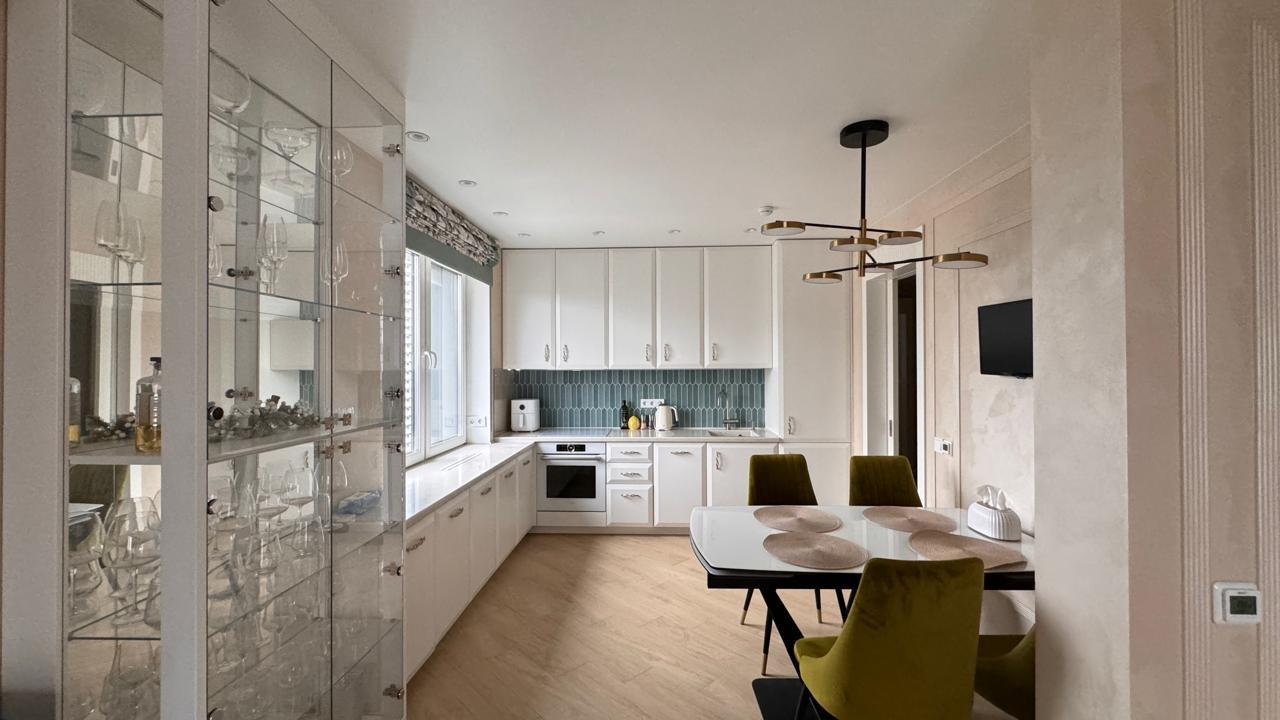 Трехкомнатная квартира в Москве, расположенная на улице Ярцевская, в процессе разработки проект-дизайна превратилась в удобную 4-х комнатную с двумя спальнями, кабинетом и кухней/столовой/гостиной.