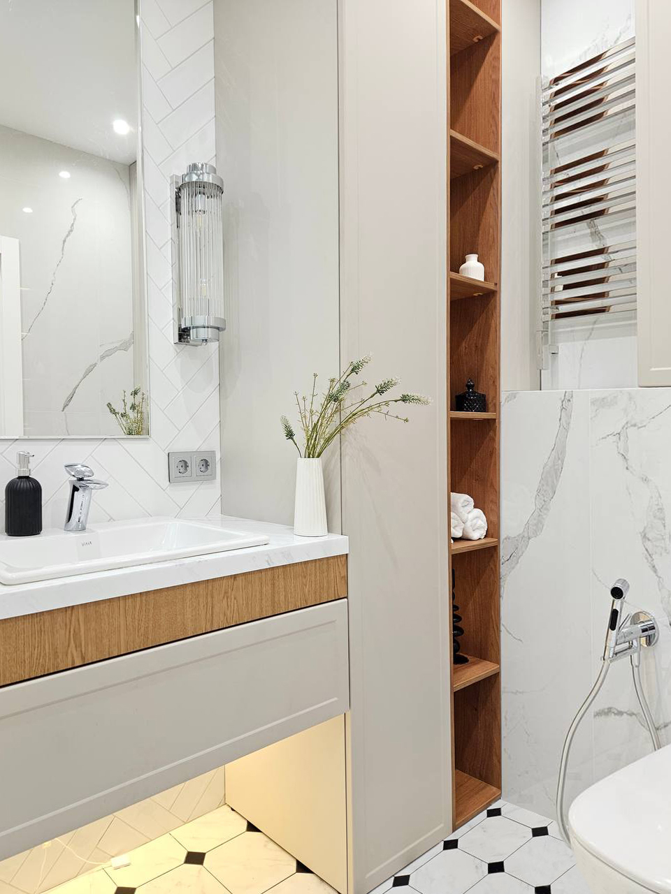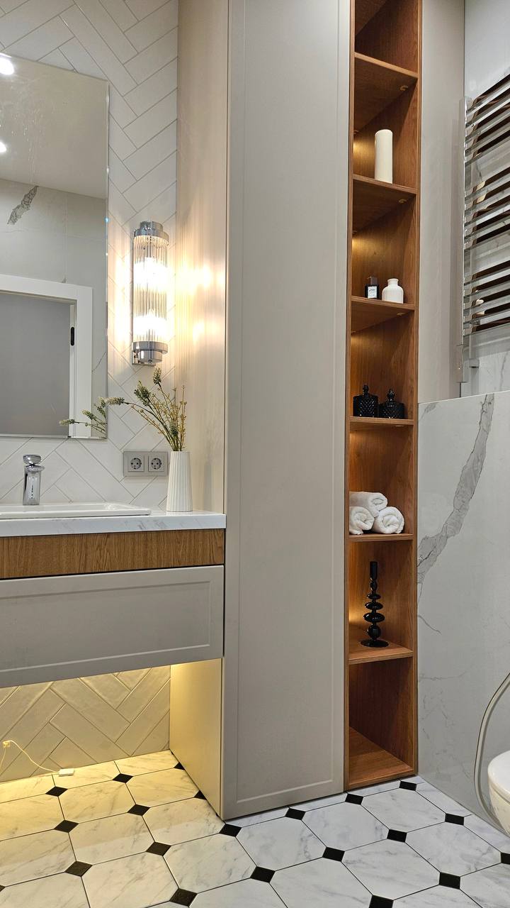 Проект 2024 года выдержан в духе актуального урбанистического дизайна: чёткие линии, сбалансированная цветовая палитра и высококачественные материалы создают атмосферу спокойствия и респектабельности.