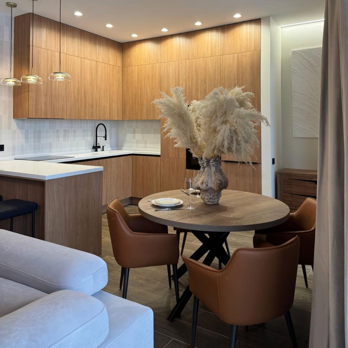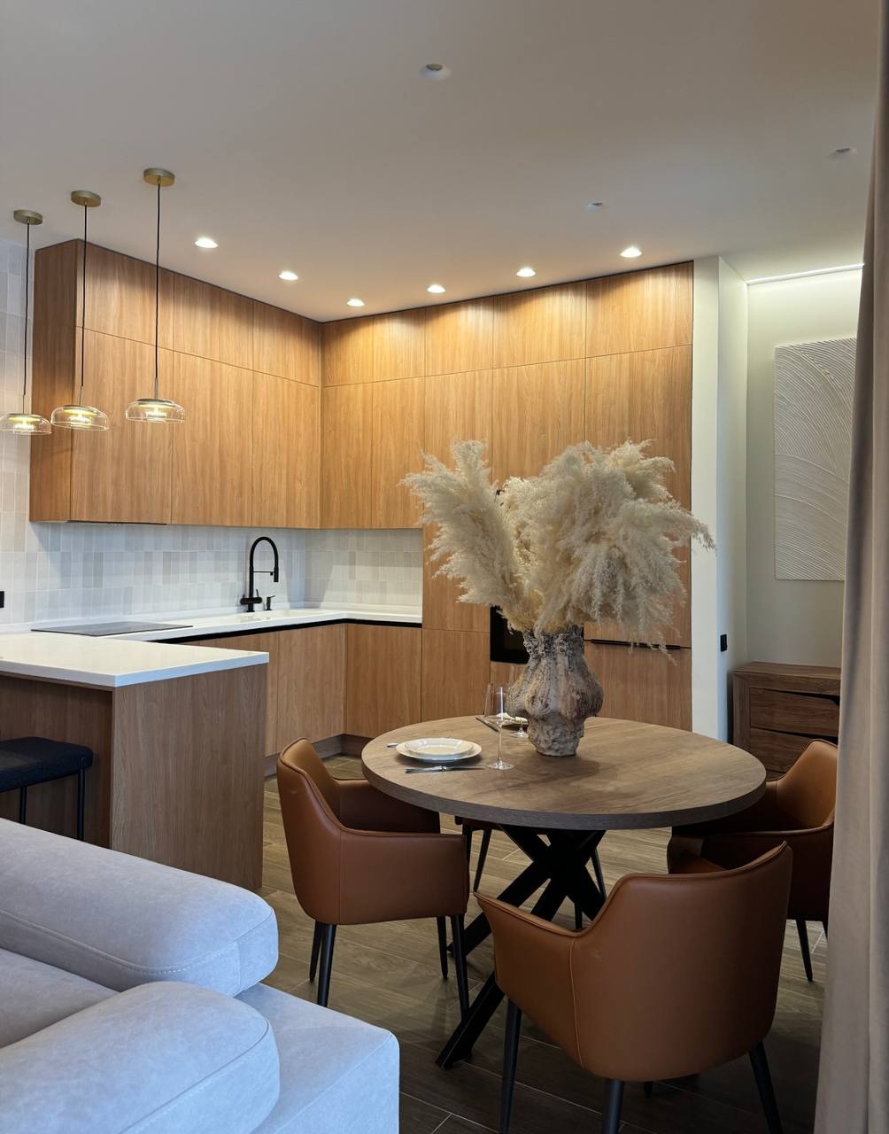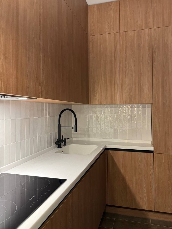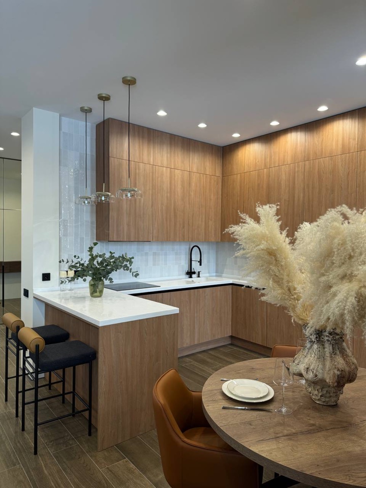 Светлая керамическая плитка на кухне — это универсальный и стильный выбор, который подходит для различных стилей интерьера и создает приятную обстановку для приготовления пищи и общения.