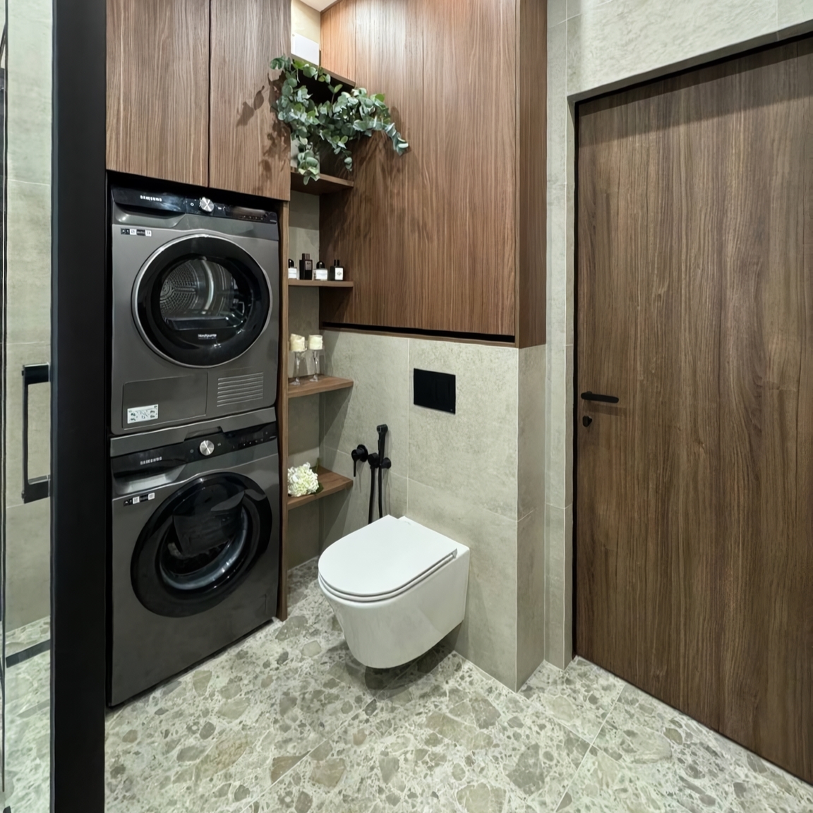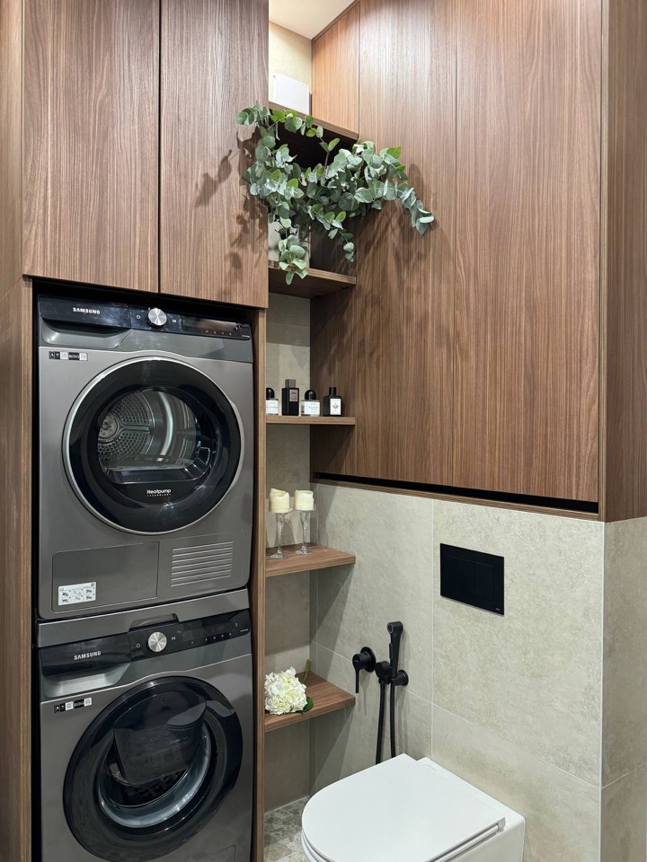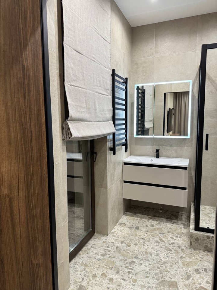 В санузле светлый керамогранит создает ощущение простора и чистоты. Он может иметь различные текстуры и оттенки — от нежно-бежевого и светло-серого до белоснежного. Такой материал отражает свет, что делает помещение более ярким и визуально увеличивает его размеры.