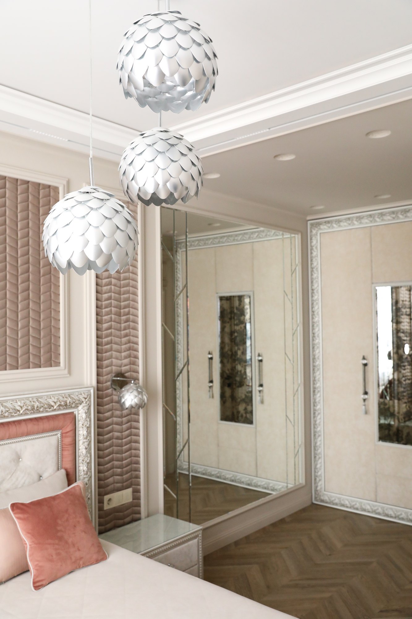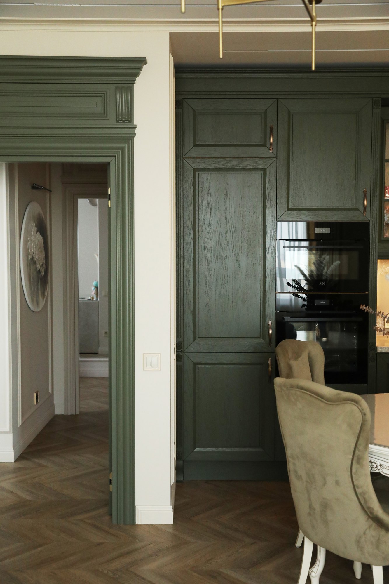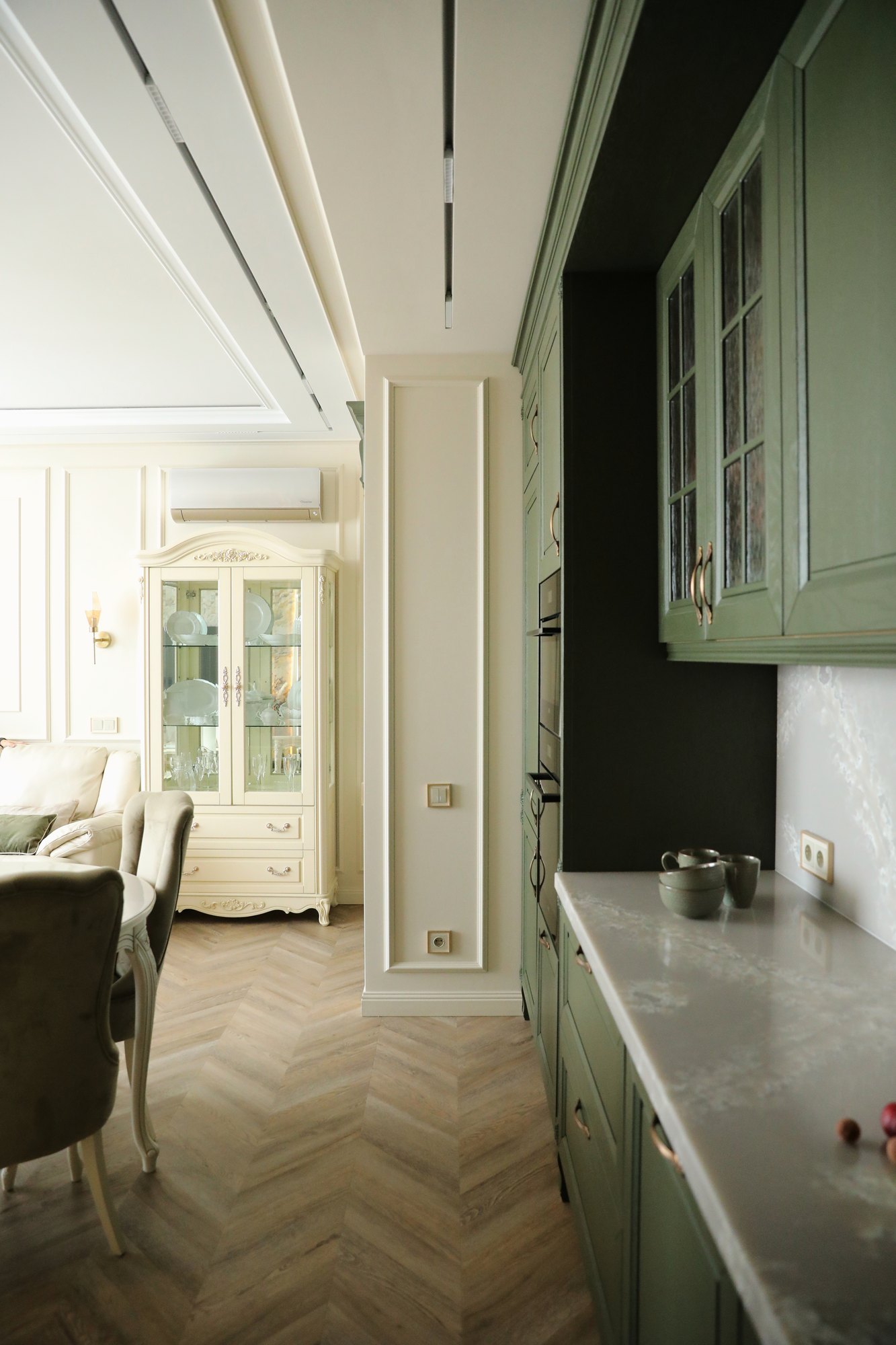 Этот интерьер выполнен в благородной современной классике с мягкими светлыми оттенками, изящной стеновой молдинговой отделкой и выразительными акцентами в мебели, текстиле и освещении. Пространство выглядит цельным и дорогим за счёт продуманной палитры, где тёплые кремовые, пудровые и древесные тона сочетаются с латунными деталями, матовыми фактурами и спокойным естественным светом. Во всех помещениях прослеживается единый стиль, который создаёт ощущение уюта, приватности и статуса.