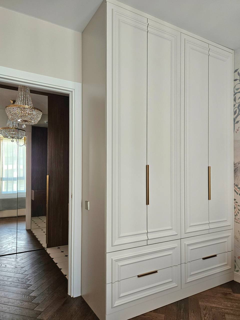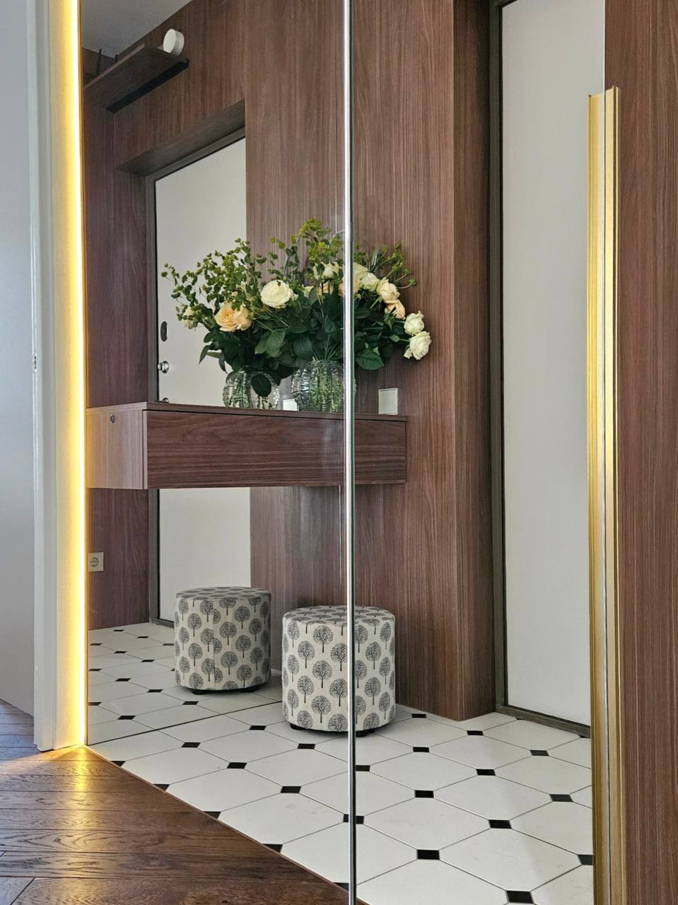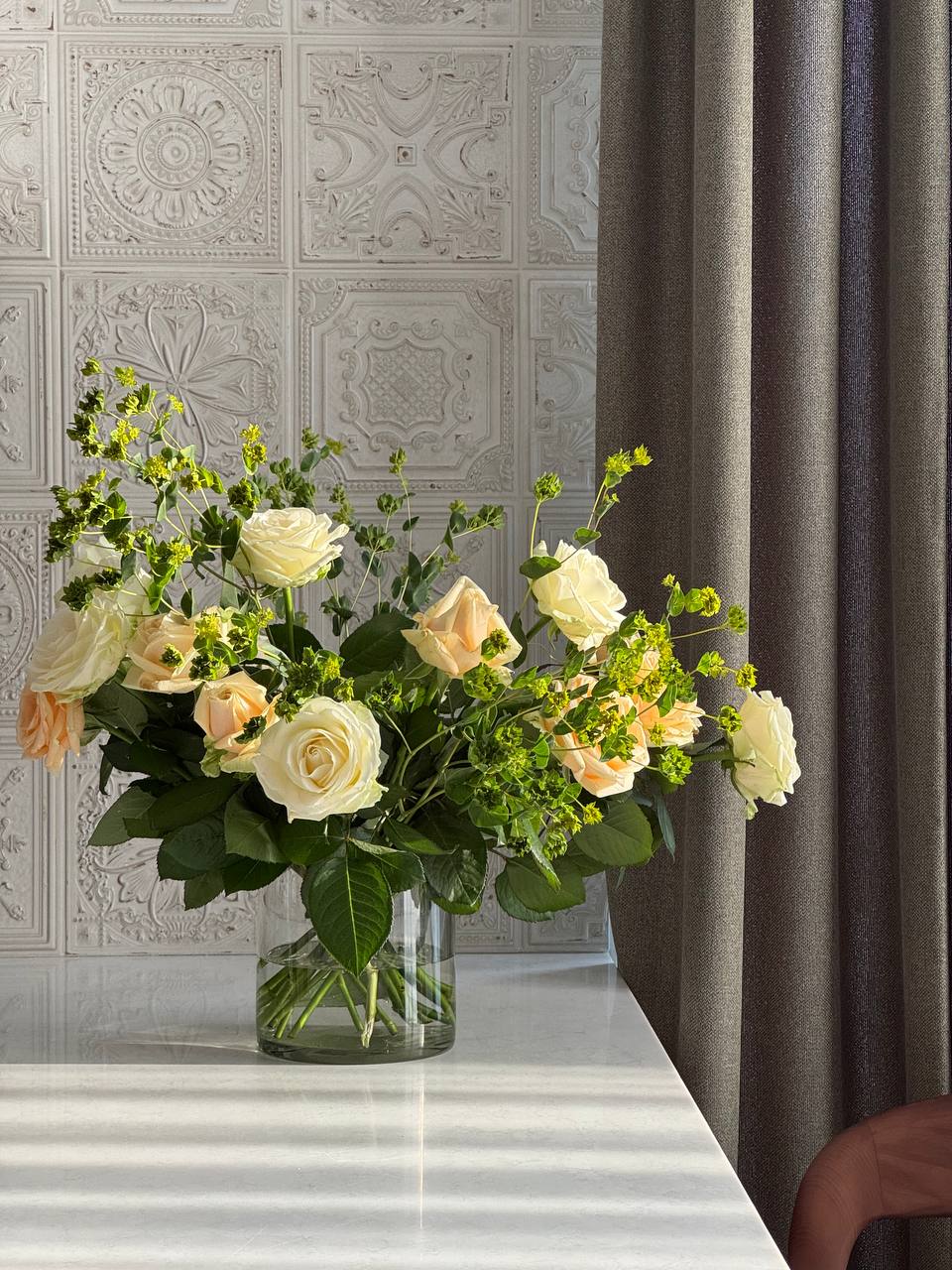 В этом проекте мы собрали спокойную, «дорогую» палитру и сделали ставку на фактуры.